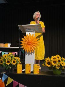 Danach wurden alle Klassenleitungen vorgestellt, die sich aus den Lehrerinnen Elena Jurado Gekas (5a), Patricia Gombert-Issa (5b), Esra Kayabasi (5d), Konstanze Korth-Neumann (5e), Jana Schneidmüller (5f), Simone Strauß-Schwabe (5h) sowie den Lehrern Johannes Herzog (5c) und Jannik Schubert (5g) zusammensetzen. Als Willkommensgeste erhielt jede Schülerin und jeder Schüler von seiner neuen Klassenleitung eine Sonnenblume als Symbol für Lebensfreude, Optimismus und Zuneigung. Anschließend stellte der Vorsitzende des Fördervereins, Uwe Tinz, die umfangreiche Arbeit der Organisation vor. Diese reiche von der Unterstützung verschiedenster Projekte bis hin zur Pflege der Beziehungen zwischen Eltern, Lehrerinnen und Lehrern sowie Ehemaligen. Traditionsgemäß bekamen dann alle Neulinge einen Duden zum Schulstart als Geschenk. Auch Franziska Küster, Vorstandsmitglied des Schulelternbeirats, begrüßte die Elternschaft und unterstrich die Bedeutung der Elternarbeit im täglichen Schulleben.