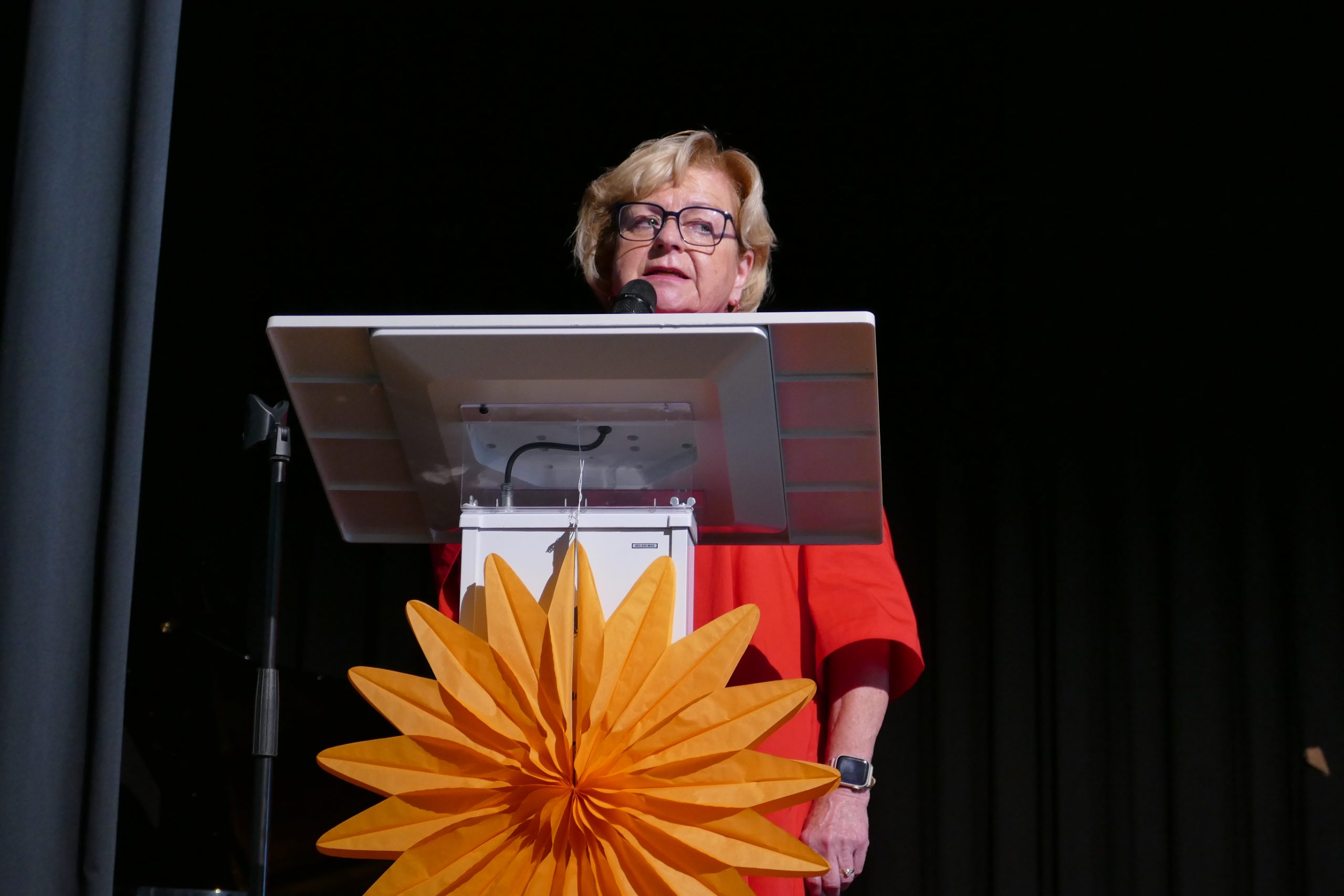 Danach richtete sich Schulleiterin Annegret Schilling an die „Neuen“. In ihrer Rede betonte sie, dass keiner alleine gelassen werde. „Vielleicht fühlt es sich heute noch etwas ungewohnt und neu an, aber keine Sorge – wir sind alle für euch da und haben euch auch gut im Blick.“ Die „neue Schule“ sei, so Schilling weiter, fast ein bisschen wie ein riesiger Abenteuerspielplatz, auf dem man manchmal vielleicht auch mal stolpert, aber immer wieder aufsteht und weitermacht. Ein Abenteuerspielplatz, der Aufregendes und Interessantes beinhalte und vor allem ein Abenteuerspielplatz, auf dem man nie allein und ohne Freundinnen und Freunde sein werde. „Wir werden viel zusammen machen und wir haben vor allem richtig viel Spaß dabei, euch zu begleiten und euch zu helfen, eure eigenen Entdeckungsreisen zu machen. Neue Freundschaften werden entstehen und ihr werdet lernen, voneinander und vor allem miteinander zu lernen“, so die Schulleiterin abschließend.