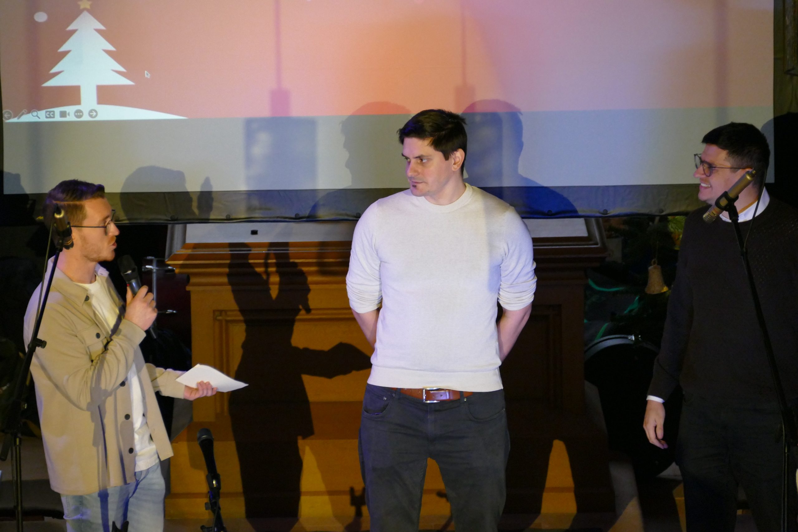 An Weihnachten kommt das „Licht der Welt“. Unter diesem Leitgedanken feierten die Jahrgangsstufen 5 bis 6 der Johannes-Gutenberg-Schule ihren diesjährigen Weihnachtsgottesdienst in der evangelischen Kirche in Dillheim. In festlicher Atmosphäre kamen Schülerinnen und Schüler gemeinsam mit ihren Lehrkräften zusammen, um sich musikalisch, kreativ und besinnlich auf das Weihnachtsfest einzustimmen. Eröffnet wurde der Gottesdienst mit einem stimmungsvollen Intro von Musiklehrer Uwe Witzel. Im Anschluss begrüßte Religionslehrer Jannik Schubert die Schulgemeinschaft und führte als Moderator durch den Gottesdienst. Mit dem gemeinsamen Lied „Fröhliche Weihnacht“, angeleitet von Johannes Herzog und der Klasse 6d, wurde schon zu Beginn eine feierliche Stimmung geschaffen. Ein besonderer Programmpunkt war das Interview mit Pfarrer Jurij Paul und Jugendreferent Lukas Kannegießer. Neben einer kurzen persönlichen Vorstellung der beiden Gäste ging es dabei auch um ganz lebensnahe Fragen rund um Weihnachten. „Wie wird bei ihnen zu Hause weihnachtlich geschmückt?“ und „Was gehört für sie zur festlichen Stimmung dazu?“, waren die Fragen von Jannik Schubert an die beiden Geistlichen. Die Antworten boten den Schülerinnen und Schülern viele Anknüpfungspunkte zu eigenen Erfahrungen und Traditionen.