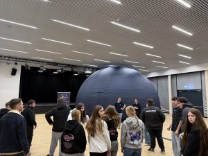 Finanziell unterstützt vom Förderverein der Schule, begaben sich der gesamte Jahrgang 6 und die zwei Astronomie-Kurse auf eine imponierende Reise durch entfernte Welten, was auch perfekt zum Gesellschaftslehre-Unterricht passte, in dem sich die Sechstklässler zuvor mit dem Thema „Orientierung auf der Erde“ beschäftigt hatten. Somit konnten die Kinder ihr Wissen zusätzlich vertiefen und erweitern. Gleichzeitig bot die 360° Show einen spannenden Ausblick auf den Physikunterricht, welcher in der Klasse 7 beginnt.