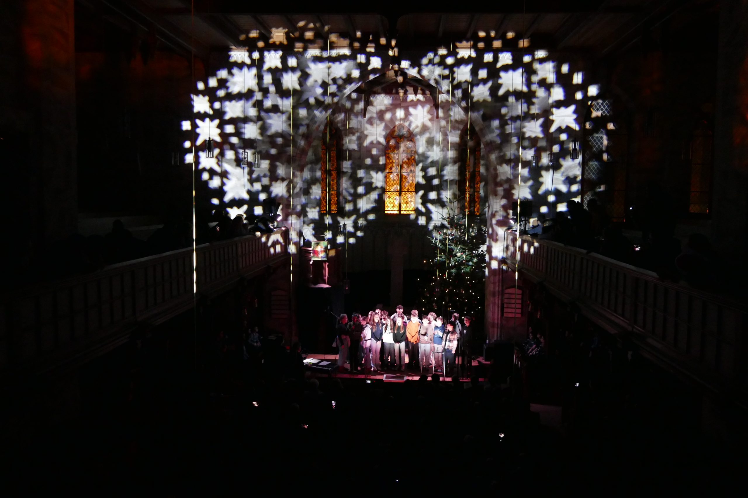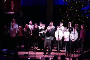 Zum Abschluss vereinten sich alle Klassen und Kurse, die Schulband und zahlreiche Mitsingende aus dem Publikum zu einem gemeinsamen Finale mit dem traditionellen „O du fröhliche“.