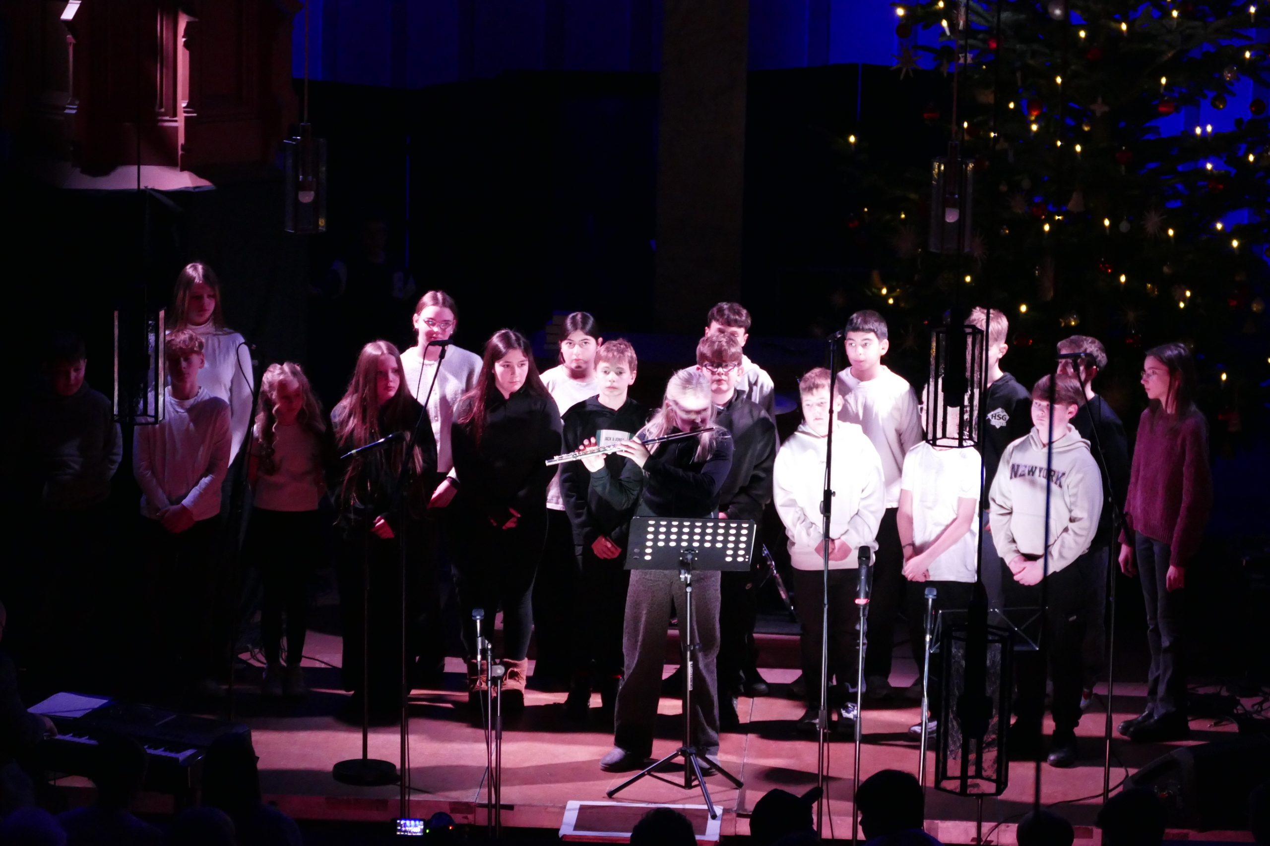 Und stimmungsvoll wurde es auch gleich zu Beginn mit dem Chor der Klassen 6a und 6f mit dem Lied „Mitten in der kalten Nacht“.