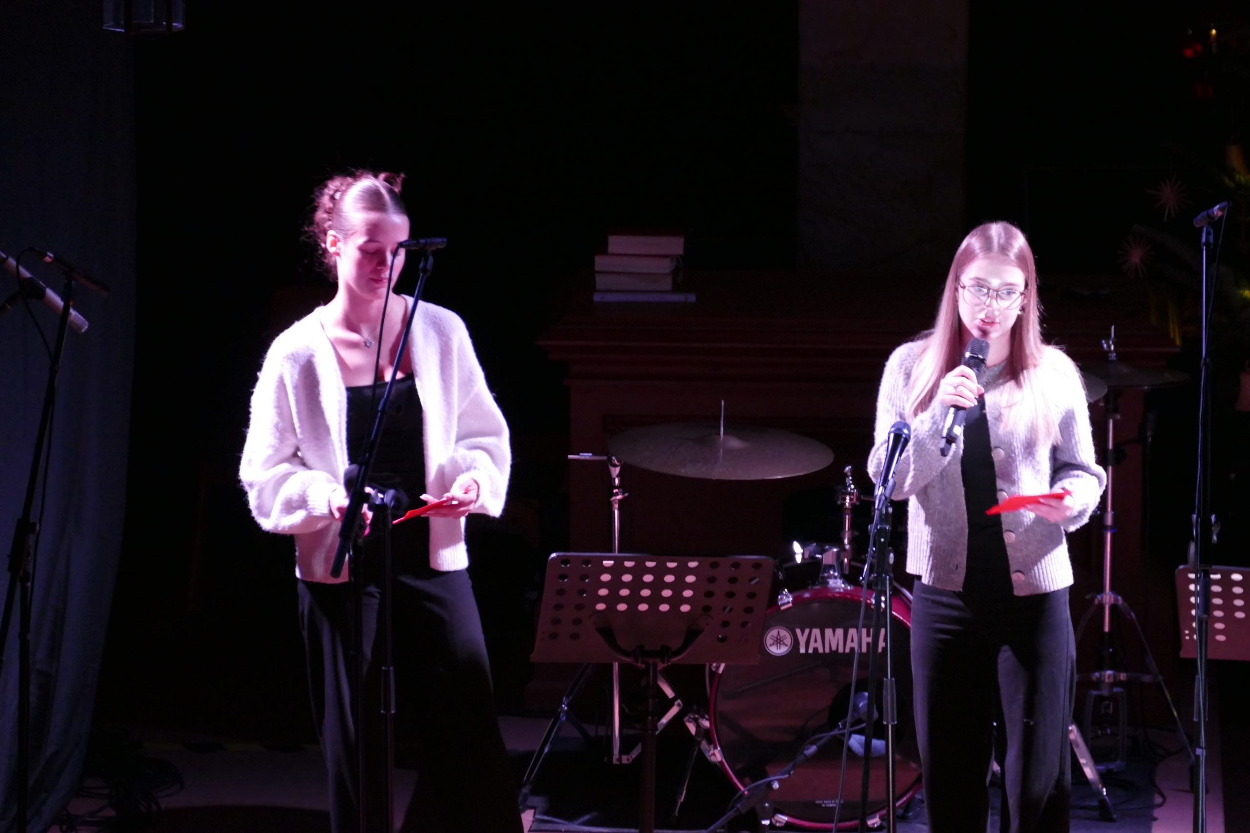 Schulleiterin Annegret Schilling betonte in ihrer Abschlussrede, wie sehr das Weihnachtskonzert doch die Schulgemeinschaft verbindet und ebenso stärkt. „Es ist immer wieder ein ganz besonderer Abend, an dem alle – von der fünften bis zur zehnten Klasse, von den Lehrkräften bis zu den Eltern – zusammenkommen. Musik schafft Verbindungen, die wir im Alltag oft gar nicht in dieser Art wahrnehmen.“ Des Weiteren lobte die Schulleiterin das herausragende Engagement der Musikkollegen Tim Gilbert, Christian Weiher und Uwe Witzel sowie des Musikfachleiters Johannes Herzog. Ein ebenfalls großes Dankeschön ging an die charmanten Moderatorinnen Sophie Rack, Line Seger, Talea Unkel und Charlotte Wild sowie an das gesamte Technik-Team um Hannes Plato und Anton Haase.